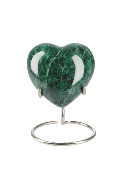 Petite urne cinéraire cœur 'Elegance' aspect pierre naturelle vert (avec support)